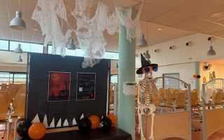 Aujourd'hui, nos élèves ont eu la surprise de découvrir leur cantine hantée ! Accueillis par Oscar, la mascotte du jour, ils ont trouvé bonbons et donuts au milieu des crânes, citrouilles et...