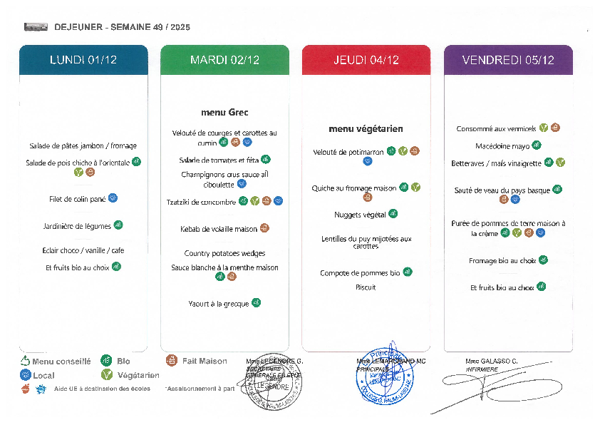 Menu de la semaine