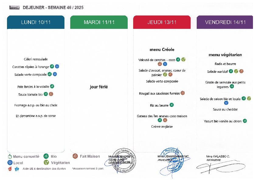 Menu de la semaine