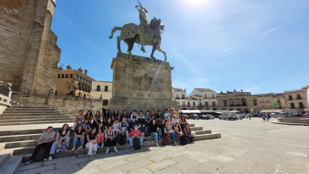 Avant de partir visiter Trujillo, nous avons fait une photo dans l’IES Pedro de Valdivia.