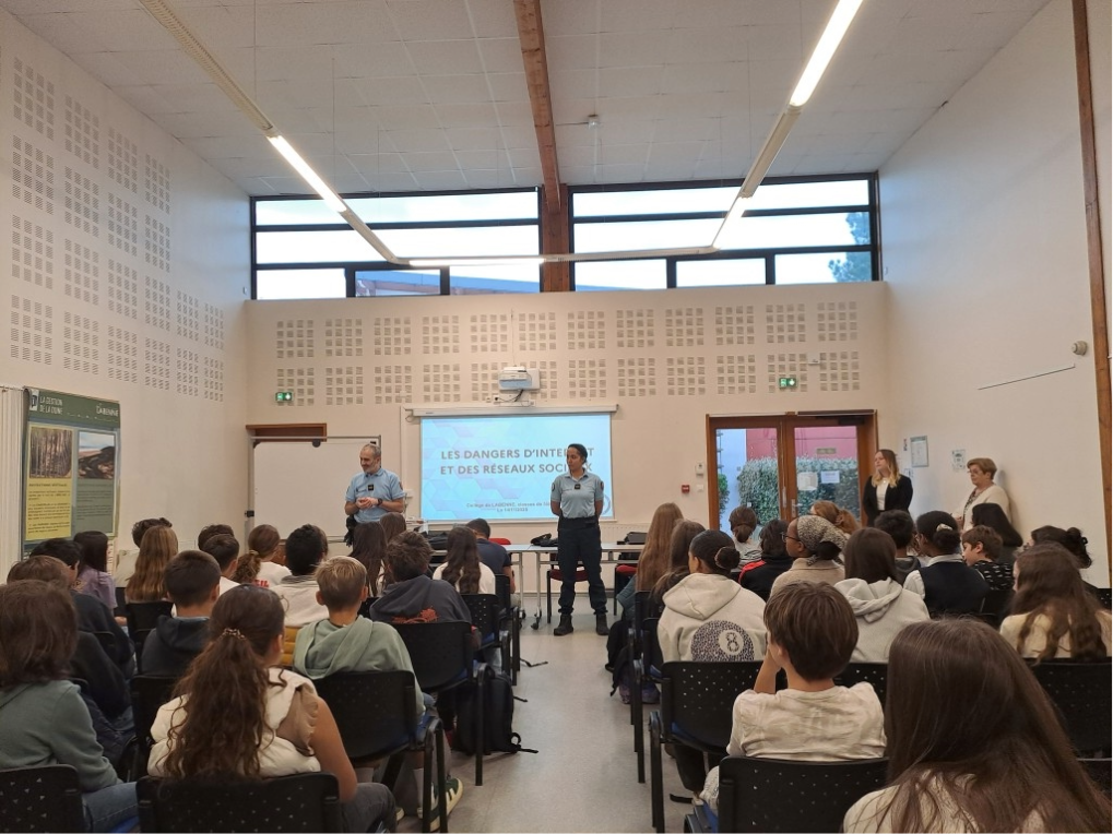 Vendredi 14 novembre dans le cadre du partenariat entre l’Education Nationale et la gendarmerie, les adjudants LOUIT et TAUOTAHA de la brigade de Mont de Marsan sont intervenus auprès de toutes les classes de 5ᵉ pour sensibiliser les élèves aux dangers des réseaux sociaux.