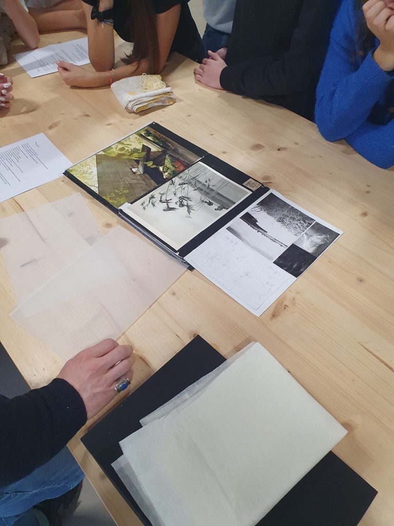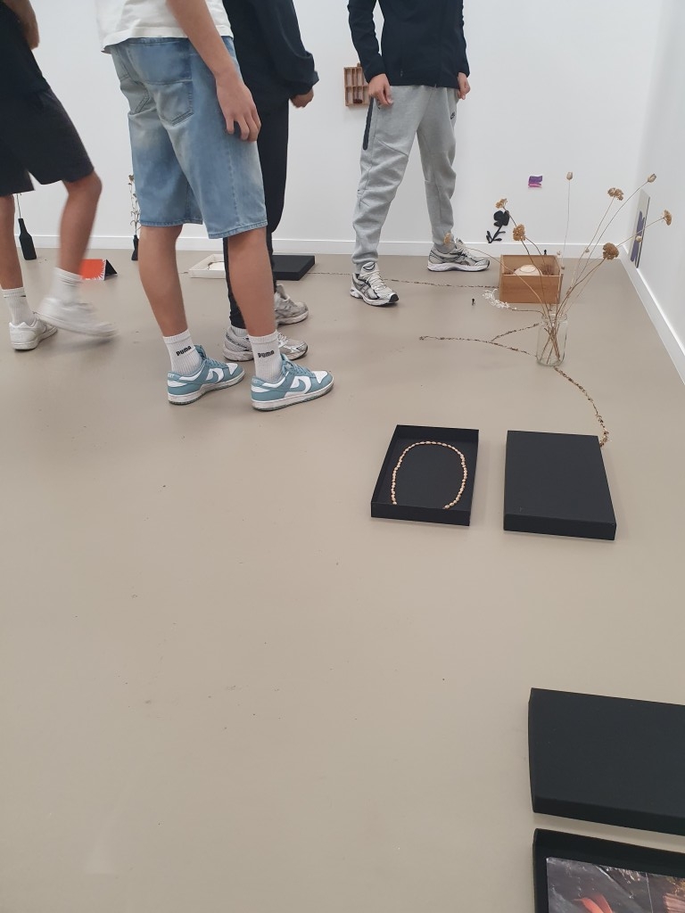 Sur place, Julien Go a présenté sa démarche et partagé avec les élèves un livre d’artiste, véritable passerelle vers l’exposition. Les élèves ont pu échanger librement, poser des questions et mieux comprendre les choix artistiques à l’origine des œuvres.